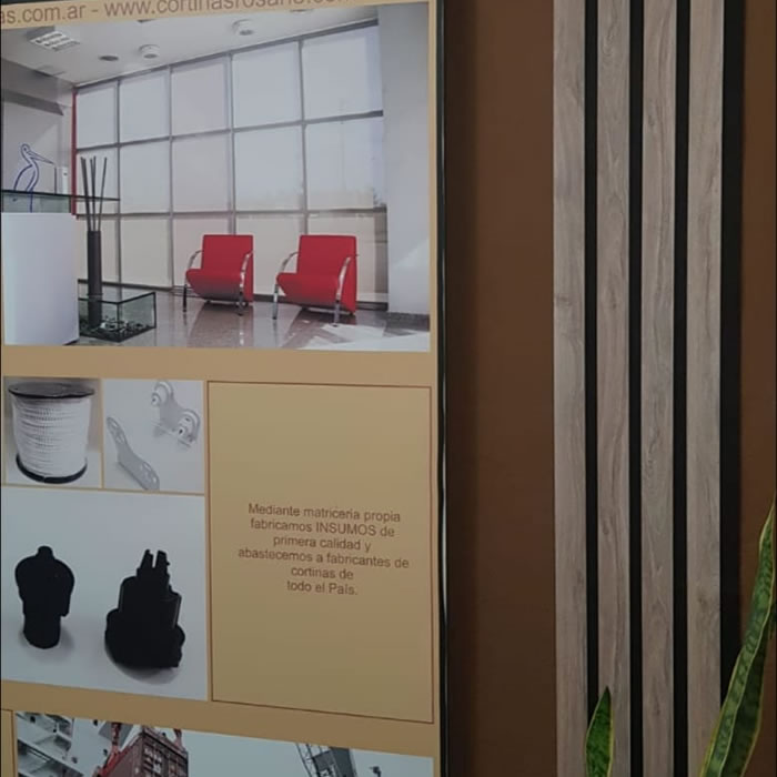 Diseñado con listones del mismo ancho para dar una imagen homogénea. Su acabado en tiras símil madera le confiere una apariencia muy cálida, encajando perfectamente diferentes espacios.